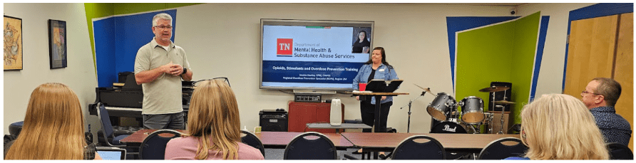 One such event took place in July in our building, entitled, “The Scope of the Opioid Problem.” Jessica Stanley of the Metro Drug Coalition and Lieutenant Josh Shaffer of the Knoxville Police Department shared the podium and delivered an impactful and informative presentation on the opioid epidemic and its influence on youth in areas served by the Joy of Music School and others.