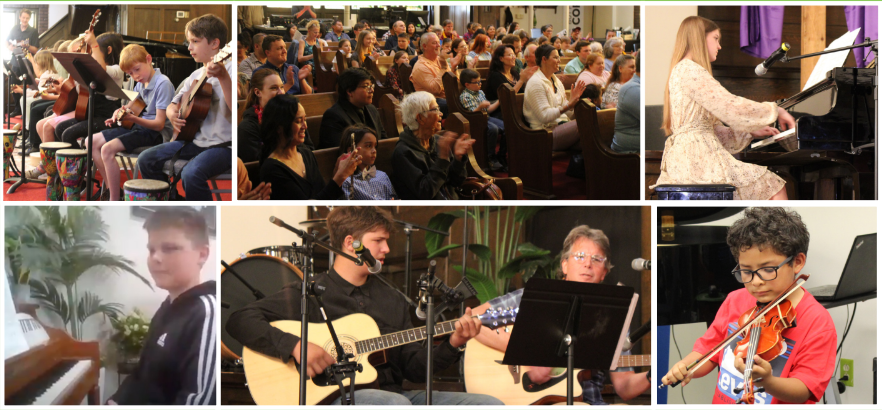 We were very pleased to return to the former First Christian Church, now known as the Point, for our Marilyn and James Dick Memorial Spring Recital on Saturday May 6. Forty-nine students performed, including the Introduction to Music Classes and the Baritone Ukulele Classes, followed by a buffet taco bar dinner in the fellowship hall.
