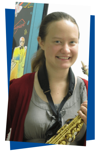 Her favorite song is the jazz standard “On the Sunny Side of the Street,” which is fitting because JoMS volunteer teacher Anna Helms brings a burst of sunshine with her every time she enters our doorway. Anna is a senior at the University of Tennessee majoring in jazz saxophone, with a minor in Spanish. She’s been volunteering at the School since her sophomore year and we couldn’t be happier about that. Her current students are Calin and Danyil. Anna, who’s from Morristown, began her music career in the fifth grade, playing the clarinet. She switched to the saxophone as a freshman in high school, so she could join a community jazz band. You can catch her gigging all over Knoxville these days. The Anna Helms Jazz Quartet plays once a month at Bistro at the Bijou. She’s in the swing band Old City Buskers and also plays in a funk band called the Get Down. Their next show is May 31 at Scruffy City Hall.
