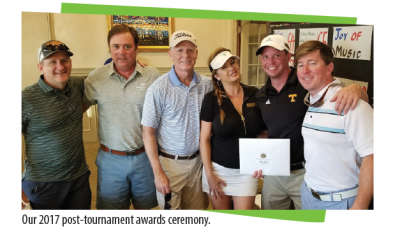 Last year’s event was “so much fun” and raised about $11,000 for the School, says Joy of Music School Executive Director Frank Graffeo. The tournament is the brainchild of our board president Cindi Alpert, who not only organized it but helped secure many of its generous sponsors. These include Cindi’s radio stations, 106.1 The River and Good Time Oldies 104.9, as well as AMS Corporation, Baker Donelson, Ladd’s Golf Carts and Knox County Sheriff-Elect Tom Spangler.